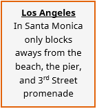 - For LA: Santa Monica near the beach and the 3rd Street Promenade.