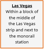 - For Las Vegas: About 1 block off the middle of the Strip, near Caesar’s Palace, and steps from the monorail station for easy access up and down the Strip.