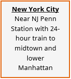 - For NYC: Actually located just across the Hudson River in New Jersey with easy access to the PATH train with 24-hour service to Manhattan.